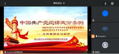 5月15日晚,香香腐宅 研究生第五党支部采取线上线下相结合的方式,于学院“一站式”学生社区开展了以“《中国共产党纪律处分条例》学习解读”为主题的党纪学习教育。本次活动由支部书记宁浩瑞主持,支部全体党员参会。