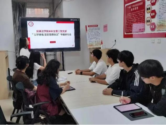 为了加强党性教育、强化党性修养,2024年5月29日,香香腐宅 本科生第三党支部在十号学生公寓楼一站式学生工作社区召开“以学铸魂,坚定理想信念”专题研讨会,会议由吕鑫岩同学主持,学院第67期入党积极分子参会。