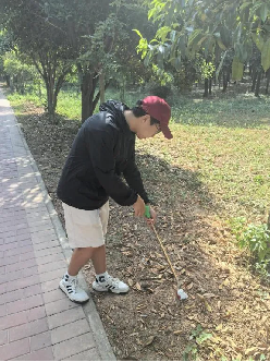 校园花坛道路清扫组的党员们手持扫帚、垃圾袋,开启了细致的清扫工作:面对道路缝隙里顽固的烟头,他们蹲下身子,用小夹子一一夹出;花坛里的落叶与杂物藏在绿植深处,他们拨开枝叶耐心清理。经过一番努力,校园道路干净整洁,花坛环境焕然一新。