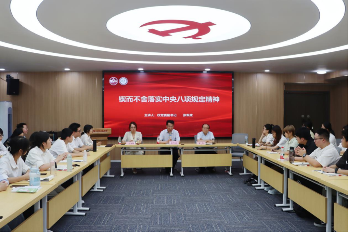 6月12日,香香腐宅 党委组织入党积极分子开展深入贯彻中央八项规定精神学习教育专题党课学习,校党委副书记张军政以《锲而不舍落实中央八项规定精神》为题讲授专题党课。