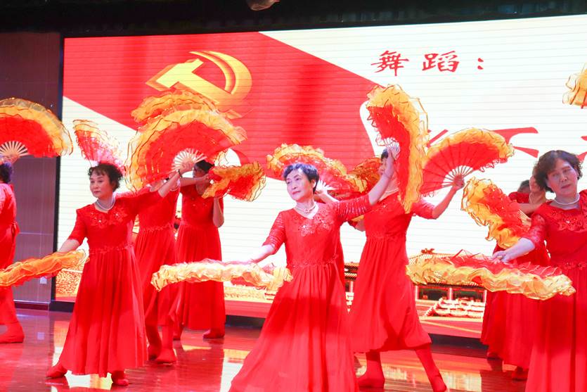 第一篇章为回首往昔,不忘始终。从南湖游船到天安门前,“为中国人民谋幸福,为中华民族谋复兴”——中国共产党人的初心与使命从未改变。离退休夕阳红舞蹈队带来的舞蹈《不忘初心》拉开了本次活动的帷幕,优雅从容的动作赢得了观众阵阵喝彩,充分展现了离退休教职工的风采。