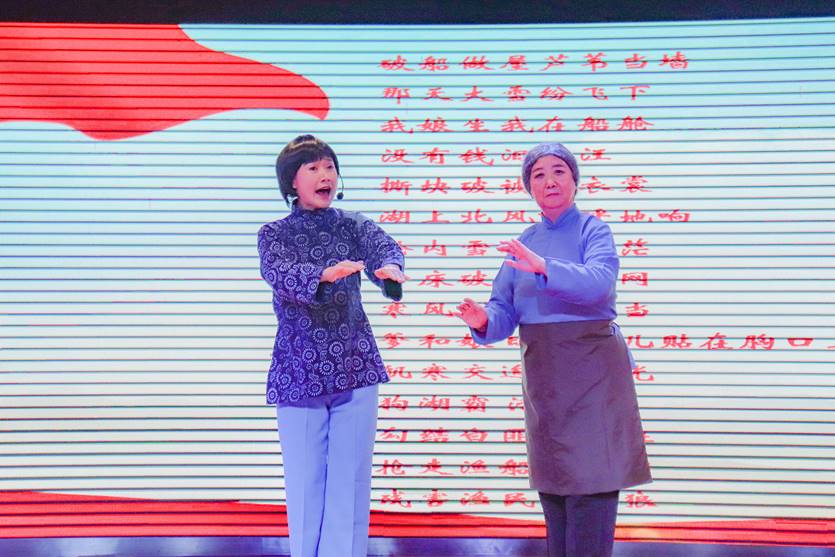 我校戏曲研究会的李婷丽、张敏莉老师带来了秦腔表演《娘的眼泪似水淌》,二人默契的配合生动再现了当时的情景,表现出母女之间深厚的感情和她们对中国共产党、对祖国的热爱。