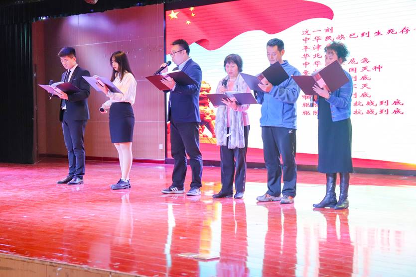 王艳琴、罗梅兰、陶宝峰、王静、黄翊恺、张思佳等六位师生朗诵了由王星泽老师所作的诗歌《不忘初心 牢记使命 永远跟党走》,言语铿锵有力而又温暖悠长,九十八年春秋变换,中国共产党人从未停止脚步,九十八载砥砺前行,中国共产党的名字一直镌刻在亿万人民的心间。