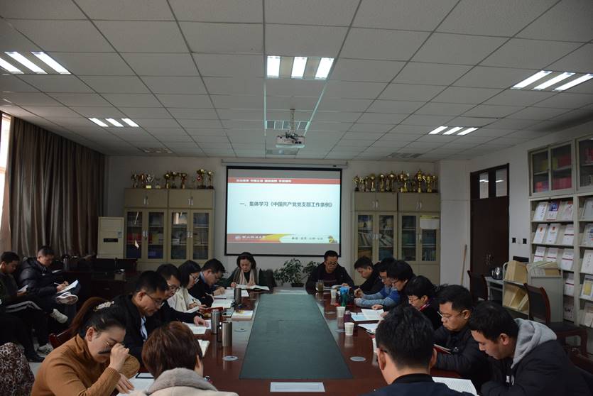 会上,学院党委书记周怡领学了《中国共产党支部工作条例(试行)》。她对《条例》制定的背景、重要意义、主要遵循的原则三个方面进行了阐述,对《条例》8章37条具体内容进行了逐条梳理和解读。结合当前支部工作的实际和存在的问题,重点学习了党支部标准化、规范化建设的具体要求。最后,周怡就如何学习贯彻《条例》,进一步加强党支部建设,规范组织生活,以及党支部书记履行支部建设主体责任三个方面提出了具体要求,并对2018年度党支部书记抓党建述职评议考核工作进行了具体安排。
