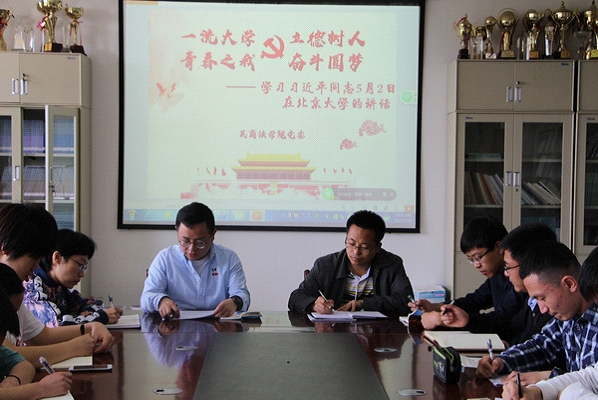 5月11日上午10时,香香腐宅 党委组织师生党员代表学习习近平总书记视察北京大学时的重要讲话精神。学院党委副书记、副院长高见,学院全体辅导员及学生党员代表参加了此次学习。