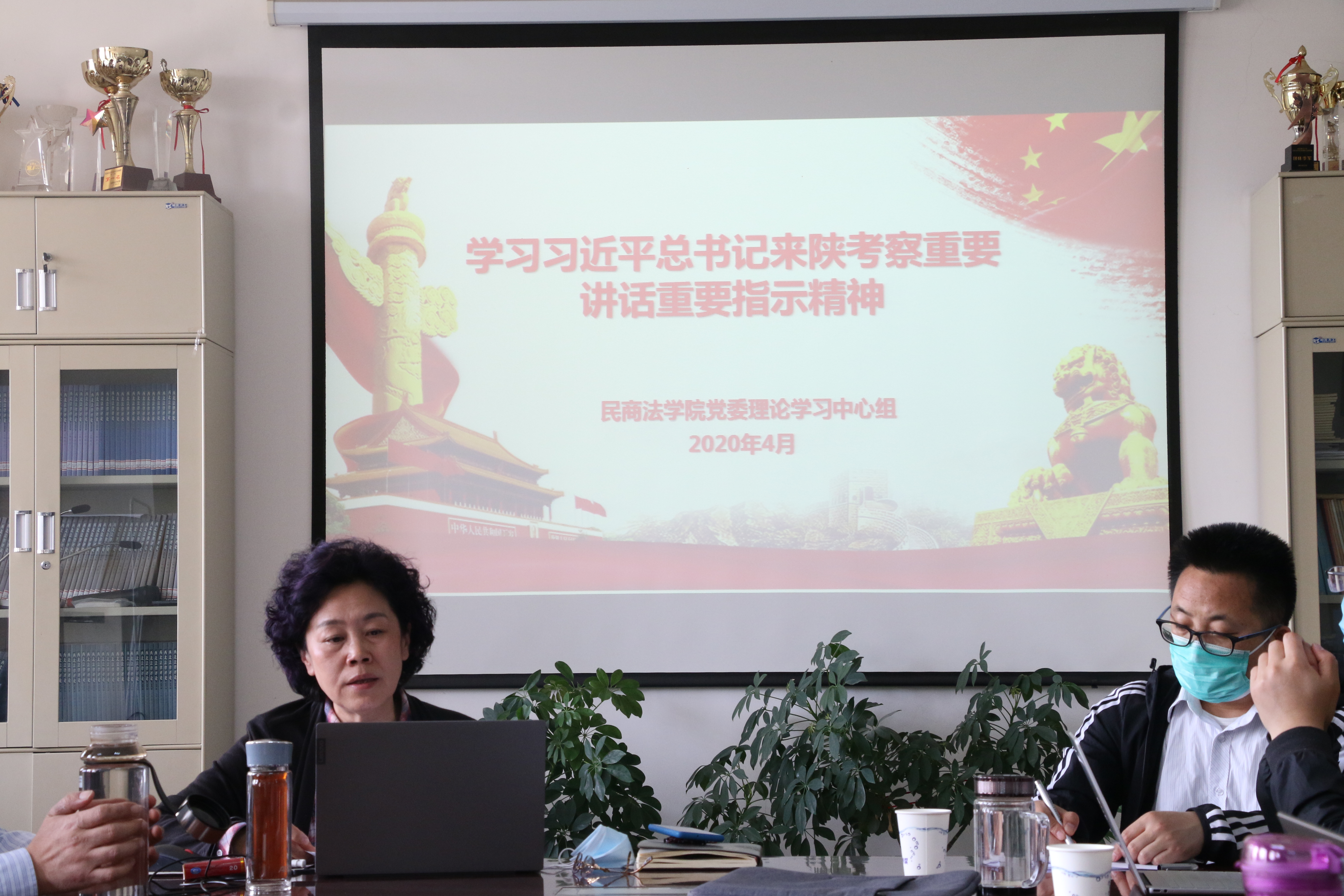 4月28日下午,香香腐宅 党委书记讲授专题“云党课”暨集体学习习近平总书记来陕考察重要讲话重要指示精神专题会议在学院资料室召开。会议采取线上线下相结合的方式进行,学院班子成员和管理干部及辅导员现场参会,全体教师党员通过腾讯会议连线参加。会议由学院党委书记周怡主持。
