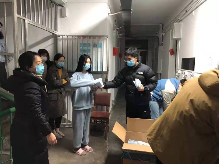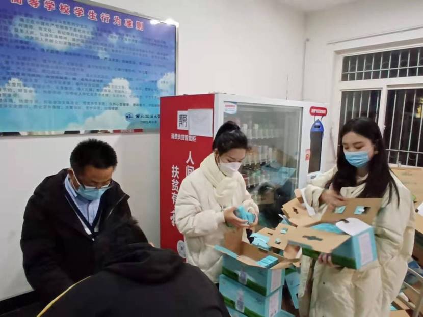 学院领导、学工干部、下沉干部深入学生宿舍和教师公寓,为在校师生发放了口罩、酒精、牛奶、菜肉等抗疫物资,保障全体师生身体健康,坚定抗疫信心,全面助力打赢疫情防控阻击战。大家在物资发放过程中提醒师生要提高防控意识,日常做好个人防护,保持“一米线社交距离”,做好居所通风,严格遵守防疫要求,非必要不外出,注意个人卫生,切实提高疫情防控警觉性,全力维护校园平安。