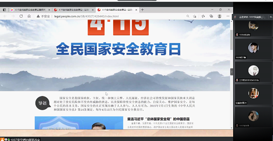 学院各党支部积极响应号召,借助“两微一端”,广泛动员学生参与“中国普法”平台开展的普法宣传答题活动,让青年学生全面深入地了解国家安全的重要意义和法律范畴,营造出浓厚的爱党爱国的校园氛围。同时,学院各年级还开展了形式多样的国家安全教育主题班会活动,组织学生观看趣味短片、学习相关法律法规、交流学习心得,深入学习习近平总书记坚持总体国家安全观的重要论述,大力宣传《宪法》所规定的关于公民维护国家安全、荣誉和利益的基本义务,做到宣传教育活动全覆盖,借此提升同学们的国家安全法治意识。