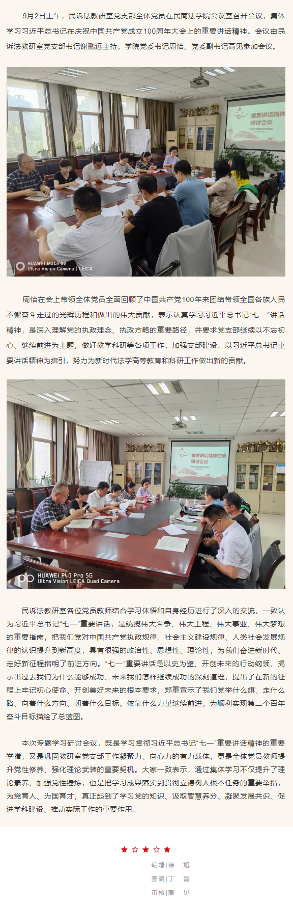 民诉教研室党支部召开“七一”讲话专题学习研讨会议