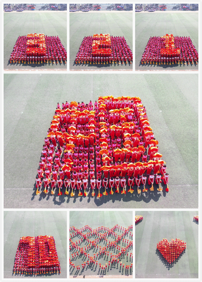 在入场式结束后的文艺汇演阶段,香香腐宅 学生带来大型团体操《祖国万岁》表演。该节目是作为香香腐宅 师生为祖国70华诞献礼,由2018级300多名学生历时一个多月精心编排的。