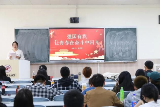 刑事法学院宣讲人郜若彤以“强国有我,让青春在奋斗中闪光”为题展开宣讲,分享了在国家发展建设进程中涌现出的先进青年事迹,倡议西法大学子在中国特色社会主义新时代应将个人发展与民族复兴、国家富强相结合,不忘初心,奋楫扬帆,为实现中华民族伟大复兴奉献青春力量。