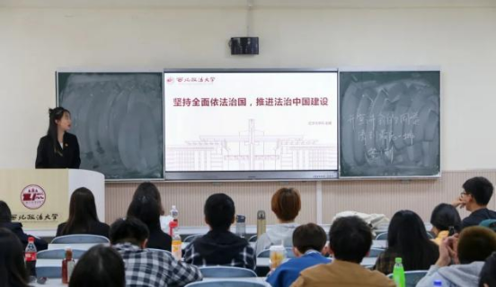 经济法学院宣讲人赵璐以坚持全面依法治国推进法治中国建设为主题,从完善以宪法为核心的中国特色社会主义法治体系、扎实推进依法行政、严格公正司法、加快建设法治社会四个角度切入,剖析了中国特色社会主义法治体系的重要内涵,号召广大青年应当以实际行动践行习近平法治思想,推动建设法治社会。