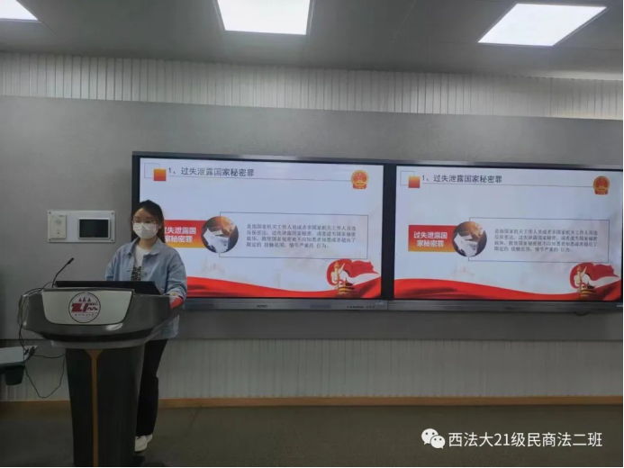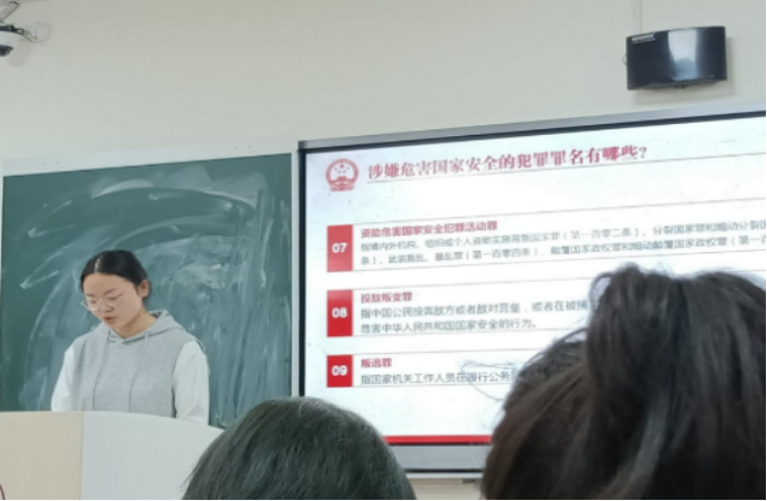 学习国防知识,加强国防教育。各班团支书为同学们介绍了我国与保密相关的国家安全法律法规,进一步明确了总体国家安全观的具体要求。同学们围绕国家安全的基本概念、当前国内国际形势、危害国家安全的行为及罪名、维护国家安全这四个方面进行了解,深入学习了习近平总书记关于总体国家安全观和国家安全工作的重要论述。