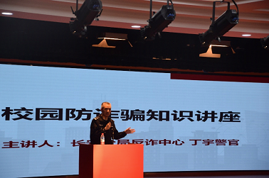 丁警官围绕以大学生为主要人群的常见诈骗现象展开,充分列举了网络兼职刷单类诈骗、裸贷诈骗等校园高发的多种诈骗手段,详细介绍了各类问题的诈骗手法、过程及应承担的法律后果。他提醒同学们在日常生活中要增强自我安全防范意识,学会辨别较为常见的电信网络诈骗手段,一旦发现被骗时应立即报警,寻求警方帮助及时止损。现场气氛热烈,丁警官的讲解精简易懂,同学们认真学习反诈知识,积极参与活动。