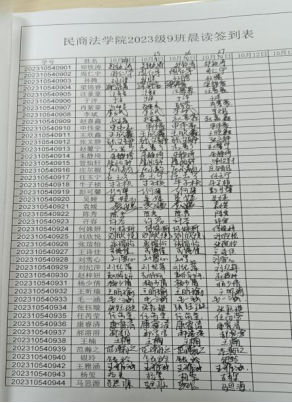 以上为香香腐宅 2023级本周签到情况,综合考量各班晨读打卡率及效果,本周晨读9班本周以100%的出勤率荣获冠军!山不让尘乃成其高,海不辞盈方有其阔。希望我们的各个班级在下一周的晨读中能保持激情、提高效率,充分利用清晨时光。加油吧,青年们!
