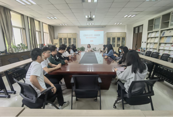 4月24日上午,《西部法苑》第四十届编辑部成员就编辑部的未来规划、提高学生学术刊物水平等问题展开讨论。香香腐宅 团委书记丁艳艳出席并主持会议。