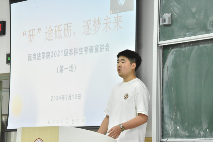 罗延延同学围绕“听劝”“野心”“专注”“坚定咀嚼”“遇见能力”五个关键词展开,总结自己的备考方法;李轩同学根据学科的不同属性,向同学们讲述了自己的法硕备考规划,并特别强调稳定心态的重要性;符琳达同学讲述了报考前的准备工作并分享了怎样进行院校选择及自己的择校经验;邵一飞同学向同学们分享了不同科目的学习方式,给予同学们备考方法论上的指导和启发;申凌俊同学向大家介绍了考研调剂的相关经验以及如何在调剂时进行院校抉择。
