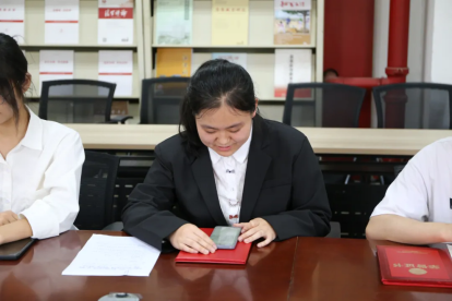 杨亚男老师宣读了第二届朋辈导师的任命决定。她表示,此次选拔经过严格筛选和层层把关,最终确定了17名品学兼优、具有较强组织能力和责任心的同学担任第二届朋辈导师,同时,她鼓励新一届朋辈导师们要勇于担当、积极作为,充分发挥朋辈导师的示范引领作用。会上,曹宏鲜老师和杨亚男老师为第二届朋辈导师颁发聘任证书。