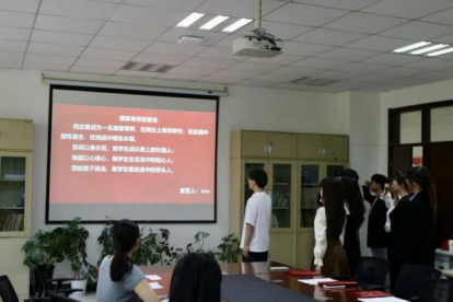 在宣誓环节中,首届朋辈导师代表常博洋带领新任朋辈导师集体宣誓,他们承诺将在岗位上恪尽职守,在实践中磨炼意志,在挑战中锤炼本领,做学生成长路上的引路人、生活当中的贴心人、前进途中的带头人。