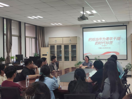 团课以“把担当作为青年干部的时代标签”为主题,丁艳艳表示,一百年前,作为时代发展的核心驱动力,当代青年挺身而出,发出救国图存的时代强音。一个时代有一个时代的使命,一代青年应当有一代青年的担当。站在新时代,广大学生干部有更好的平台、更广阔的舞台,新的使命、新的任务也呼唤着广大学生干部要在工作职责中有所作为、敢于担当。具体而言,就是要做到“三敢”,即敢吃苦、敢担当、敢作为。对此,同学们纷纷表示赞同,并表示将在日后的工作中严于律己、勤于奉献、勇于担当。