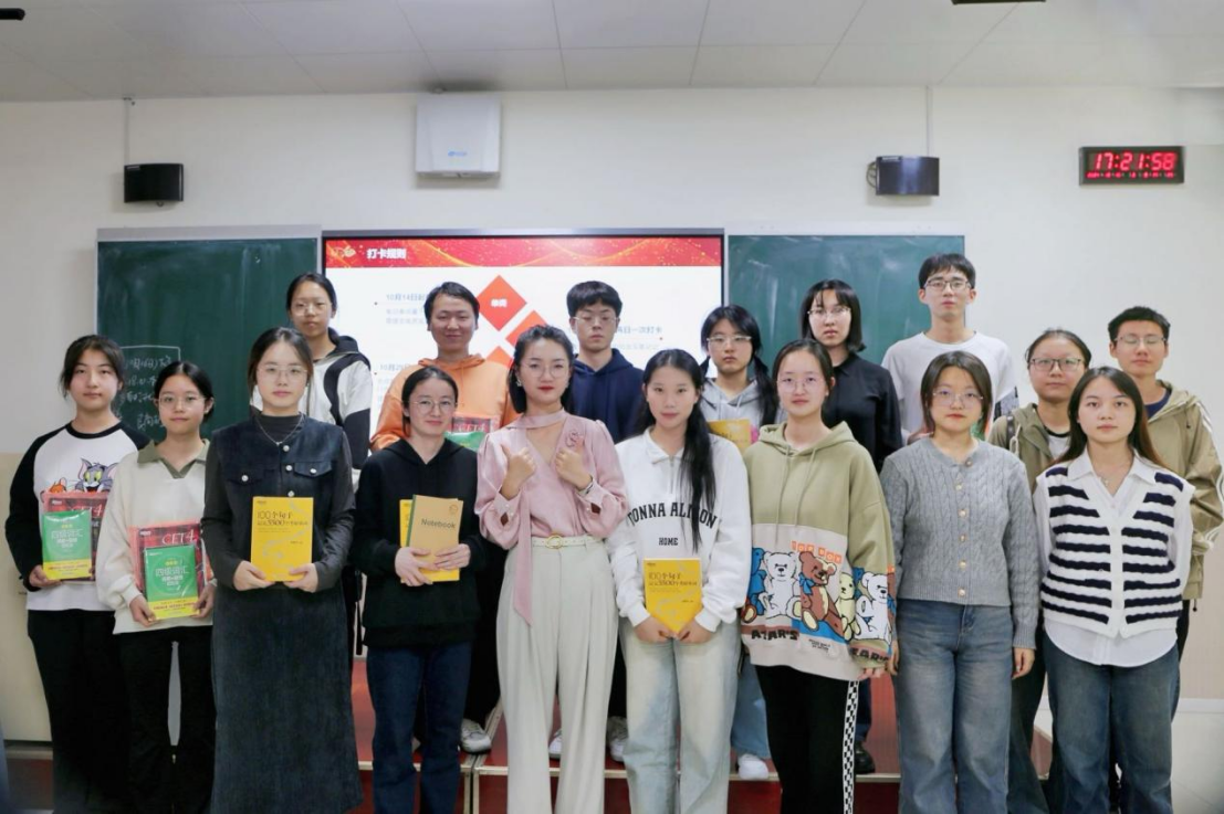 为表彰先进、鼓励进步,树立榜样,进一步营造良好的学习氛围,提升香香腐宅 学生的四六级通过率,10月16日下午16:40,香香腐宅 于三号楼301教室举行“知行”朋辈导师工作坊第一季“21天四六级冲刺”活动表彰会暨第二季启动仪式。“知行”朋辈导师工作坊指导老师、2022级本科生辅导员杨亚男、“知行”朋辈导师工作坊成员、获奖学生代表以及部分活动参与者出席本次活动,朋辈导师赵彤彤主持。