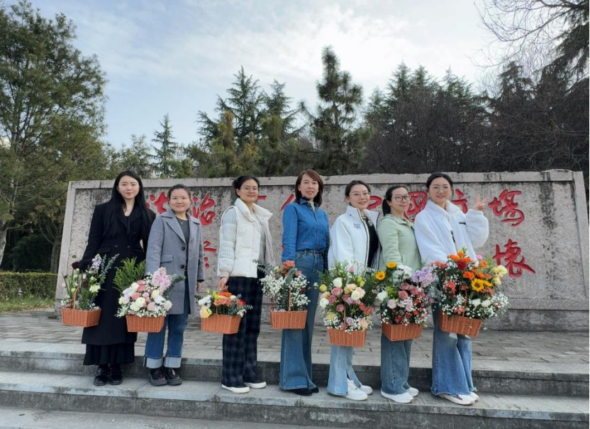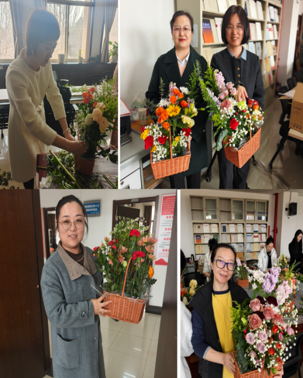 在“芳华绽放花香满院”主题插花活动中,学院20余位教职工在花香与创意中感受节日的温馨与美好,玫瑰、康乃馨、洋桔梗、相思果、满天星等各色花材错落摆放、花香四溢,老师们以饱满的热情沉浸在插花创作中,学院资料室内欢声笑语不断,大家互相交流创作灵感,老师们心灵手巧地将各种花材创作出各有特色的花艺作品;插花活动结束后,老师们在校园里打卡拍照,用手机相机记录下美好瞬间,她们带着春日的生机盎然,成为校园里最亮丽的风景线。