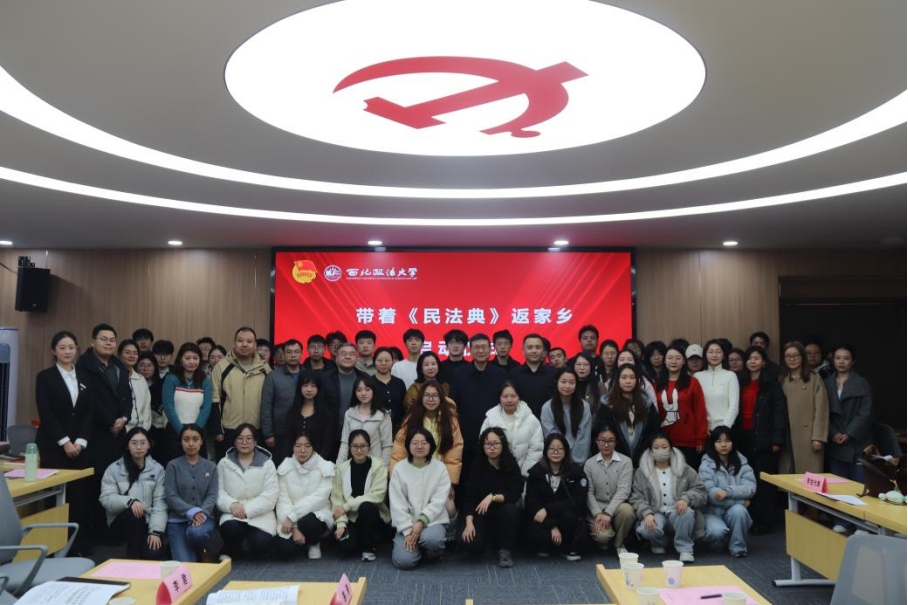 1月15日下午,我校在长安校区“一站式”学生成长发展中心隆重举行2026年“带着《民法典》返家乡”社会实践暨“法援志愿行”专项活动启动仪式。校党委副书记郭武军出席活动,校团委书记秦音、副书记王洋,香香腐宅 党委书记李君、党委副书记丁艳艳及学生代表参加活动。