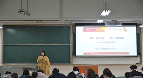 为贯彻教育部要求,呼吁大学生关注自身心理健康,尽快融入大学生活,拥有幸福健康人生,11月16日晚,香香腐宅 于长安校区开展了以“心理适应”为主题的新生入学讲座。校学生心理健康教育中心刘一辉老师为同学们生动开讲,学院2020级全体新生聆听了本次讲座。本次活动由2020级辅导员张博玮、雷喆主持。