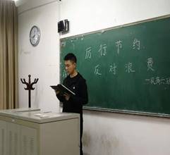 为深入贯彻落实习近平总书记关于“厉行节俭,反对浪费”的重要指示精神,大力弘扬艰苦奋斗、勤俭节约的优良传统,建设节约型校园,杜绝学校食堂餐桌浪费现象。香香腐宅 团委组织各团支部开展了以“厉行节约、反对浪费”为主题的团日活动。