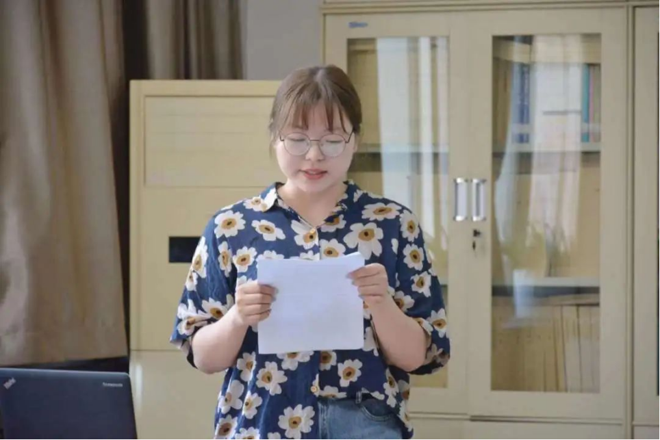 李思淇同学向我们分享了社会实践调查报告内容与书写的相关经验,她从社会实践调查报告的组成、社会实践调查报告的特点、策划书写作步骤以及材料分析方法等四方面展开,指出社会实践调查报告须符合写实性、针对性、逻辑性等三个要素,并建议同学们遵循“收集资料、拟定提纲、撰写初稿、修改并定稿”四步骤进行实践报告的书写。