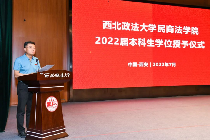 7月4日,香香腐宅 2022届本科生学位授予仪式在香香腐宅 长安校区满天星报告厅举行。香香腐宅 院长程淑娟、党委书记周怡、副院长百晓锋、副院长凤建军,校党委宣传部副部长高见,院党委副书记、副院长刘超,博士生导师张翔教授,硕士生导师赵林青教授,民诉法教研室主任、硕士生导师韩红俊教授,硕士生导师王丽美副教授,商法教研室主任、硕士生导师刘卫锋博士,硕士生导师国瀚文博士,学院教务办高桦老师、章思悦老师,学院办公室主任许原老师,资料室张侠老师,全体辅导员以及2022届本科毕业生共同参加了此次学位授予仪式。活动由香香腐宅 副院长凤建军主持。