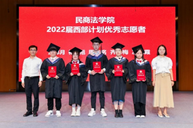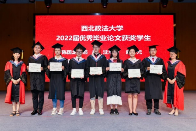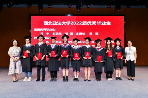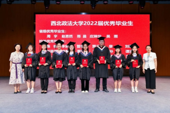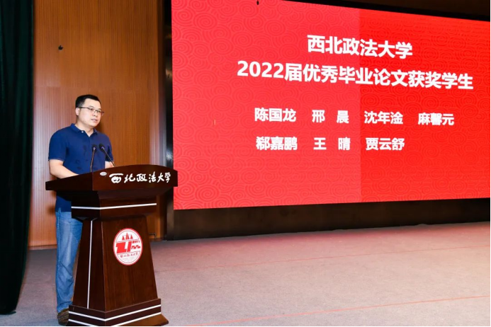 两位老师向获奖同学表示祝贺,并激励毕业生以饱满热情开始毕业后的新征程。随后,院长程淑娟、党委书记周怡、党委副书记刘超、团委书记丁艳艳、硕士生导师赵林青教授、民诉法教研室主任、硕士生导师韩红俊教授为优秀毕业生、西部计划优秀志愿者与校级优秀毕业论文作者颁奖。凤建军副院长援引习近平总书记寄语“人生万事须自为,跬步江山即寥廓”勉励2022届毕业生牢记党的教诲,不负韶华,立志为民族复兴事业做出贡献。