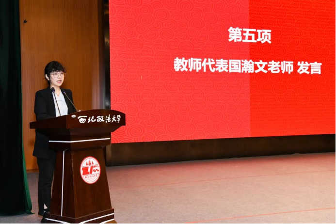 仪式第五项,国瀚文老师代表香香腐宅 教师寄语毕业同学。国老师既表达了临别之际香香腐宅 各位领导老师对于毕业同学的不舍与关心,也以“匠心守护本心,本心守护初心”为内容对在场同学进行了叮嘱与激励。国老师强调,民商法学是普世济民、经世济邦的学问,作为香香腐宅 学子,应当牢记四年所学的法学基础理论与知识框架,学以致用,积极承担责任,为国家与社会的法治撑起一片蓝天。