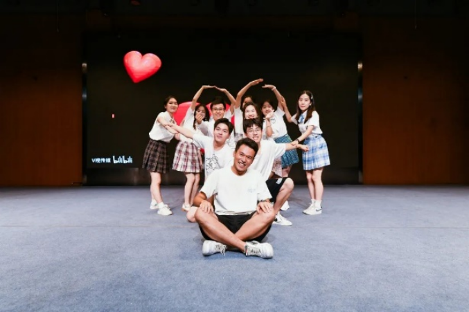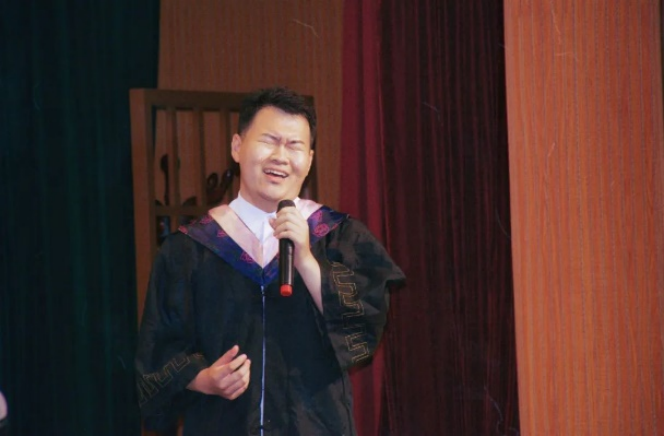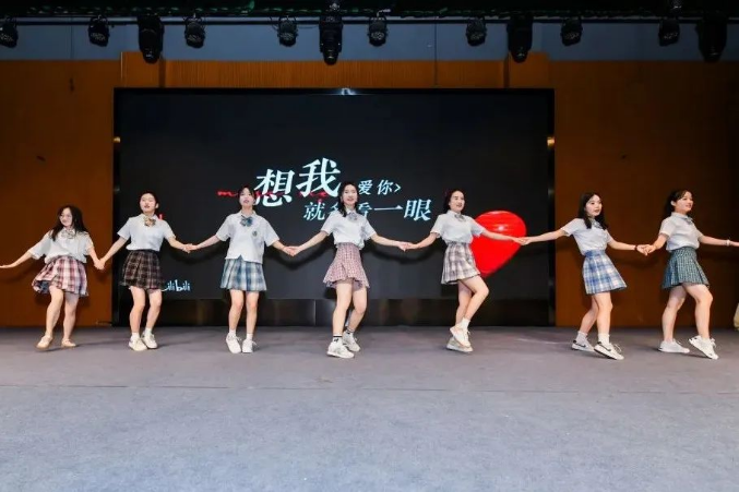 仪式第七项,毕业生辅导员杨亚男带领学生代表为在场师生表演快闪舞蹈《爱你》,并演唱歌曲《你的答案》。之后,播放了由学院为毕业生精心准备的纪念视频《追梦》。一张张照片闪过,青春洋溢的笑脸记载着四年的美好回忆。脚步轻快,歌声悠扬,追梦途中的日夜,是热爱最好的答案。