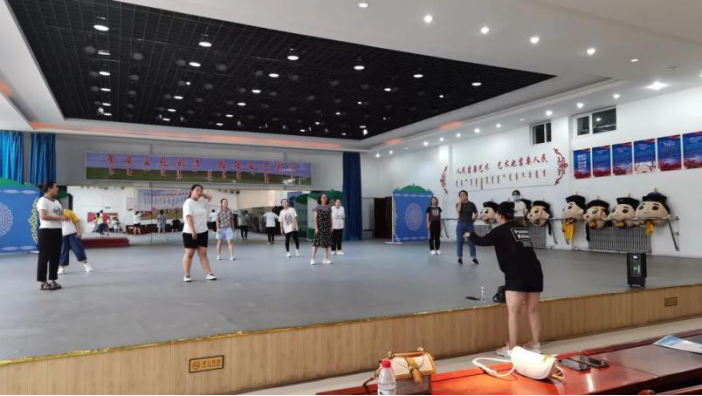本次调研活动的第一站我们来到了苏尼特右旗赛罕塔拉镇的乌兰牧骑广场。在这里,我们通过文化长廊展板的介绍,初步了解了苏尼特右旗乌兰牧骑的故事;广场上各个制作精美的雕塑也让乌兰牧骑文化立体化地呈现在我们的眼前;同时在与广场上的本地居民的交流过程中,我们也明白了乌兰牧骑在当地日常文化生活中的重要作用和意义。