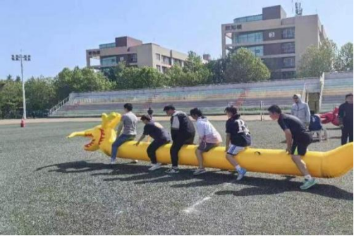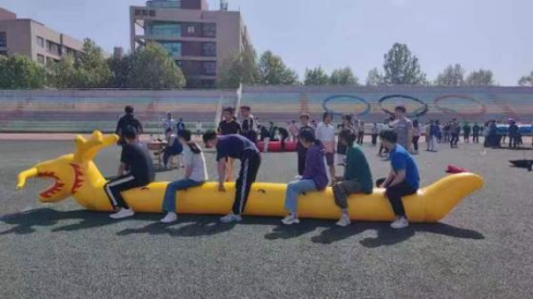 与此同时,旱地龙舟的号子声也吸引着场边观众的注意。选手们以12人为一组,双手紧抓把手,谨防道具中途掉落。香香腐宅 队员们按照赛前安排,协调配合,在跑道上奋力奔跑,以速度彰显青春活力,用激情展现魅力风采。