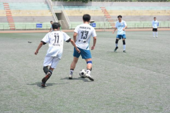 下午1时40分,下半场比赛开始。我方球员开局积极配合,多次打门。双方球员攻势猛烈,比赛进入白热化阶段。7号球员刘琦率先踢出一记角球。1号球员黄信杰以一记弧线球创造先机,无奈与进球失之交臂。终场哨声吹响,我方以0:1惜败。