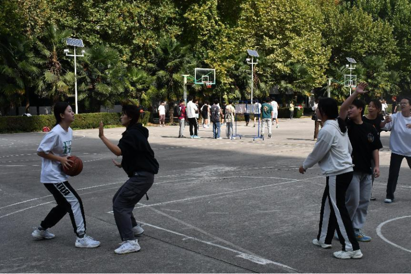 下半场,男生组的比分逐渐开始拉开差距。大二组配合默契,接连组织进攻,频频得分,保持了上半场的比分优势;大一新生也不甘示弱,奋力拼搏,尽力缩小比分差距。女子组运动员也全身心投入比赛,每一位选手都在阳光照耀下奋力奔跑,积极寻找机会进攻,有序展开布防,默契配合,双方你来我往的精彩表现赢得了现场观众的阵阵掌声。