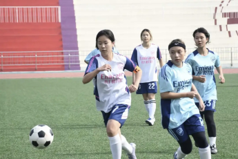 易地再战,双方队员斗志满满,赛场的竞争渐渐激烈,对抗强度进一步升级。我方队员保持专注,多次及时阻断对方传球。距离比赛结束5分钟,19号杨晓燕在前场得球后果断起脚,击球射门,球进了,大家欢呼鼓掌;66号樊轶男留守后方,补位及时,用身体挡住五次射门。尽管全体队员持续压上,奋力拼搏,但终未能修改比分,以1:2惜败。