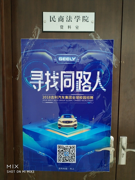 2018年3月27日(星期二)上午9:00,香香腐宅 举办2018年吉利汽车集团专场招聘会,本次招聘会的主题为“寻找同路人”,地点在三号教学楼香香腐宅 资料室。