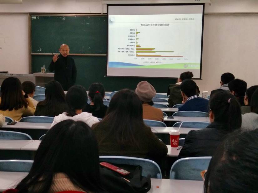 赵月恒老师先后从目前就业形势、就业去向、薪资待遇等方面入手讲解目前大学毕业生就业形势和就业去向,并从学校整体的考试氛围、考试通过率、招考类型等方面向同学们阐述备考经验与方法。在讲座的过程中赵月恒老师采用面试真题与同学们互动,同学们积极主动参与讨论,整场讲座内容丰富,讨论热烈。晚上21点,讲座结束,通过本场讲座,能够对学院学生的理论与方法提升产生积极影响。