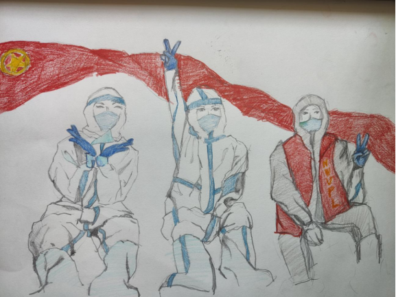 画面中的“大白”与红衣志愿者与我记忆中争先报名校园防疫志愿的同学的身影紧密重合。因为心中有党的信念、有他人,所以有担当新使命、奋进新征程的青春力量。在疫情的波折下,在防疫的浪潮中,三名为自己的行为自豪快乐的同学是浪花几朵,亦是青年听党话、跟党走的最真实写照。