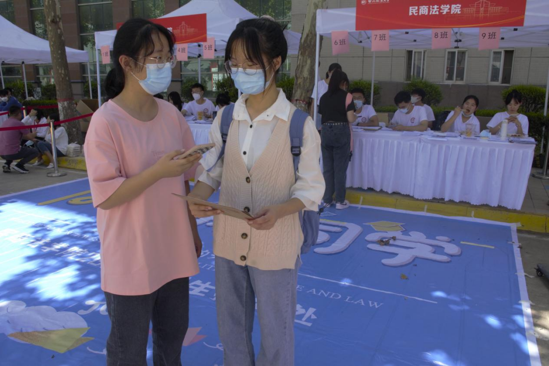 当时选择来做志愿者是由于去年我们也是在志愿者的帮助下完成报到的,如今选择坐在志愿者的位置去服务新生也算是对于我们民商精神的一种传承。