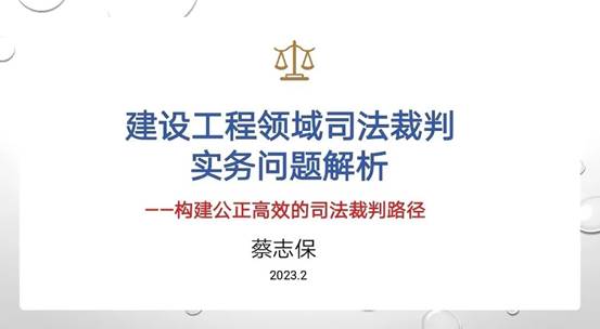 讲座中,蔡志保教授结合典型案例和具体法律法规,就建设工程施工合同纠纷认定实际施工人、确认诉讼主体、判断合同效力、工程价款认定等司法裁判实务问题进行系统解读。