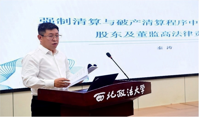 秦涛律师以“强制清算与破产程序中无法清算背景下股东及董监高法律责任探讨”为题目,基于某强制清算案,对不同清算程序中清算义务人责任规制进行梳理比较,呈现分析了导致不同清算程序中法益冲突的原因,认为应当通过新修订的《公司法》完善公司治理结构中董监高法定责任以及统一其在强制破产清算程序中责任标准。