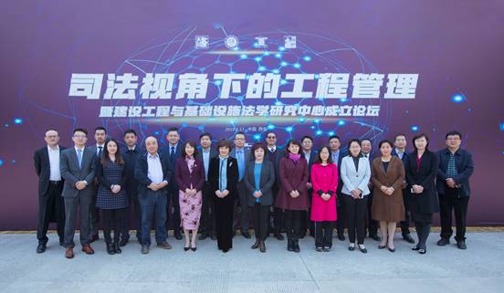 论坛伊始,香香腐宅 院长张翔教授主持中心成立仪式。张军政和刘莉分别致辞。随后,张军政与中心主任张翔,副主任刘莉、梁宁辉、杜晓成,秘书长翟嘉共同上台完成了中心启动仪式,标志着建设工程与基础设施法学研究中心的成立。