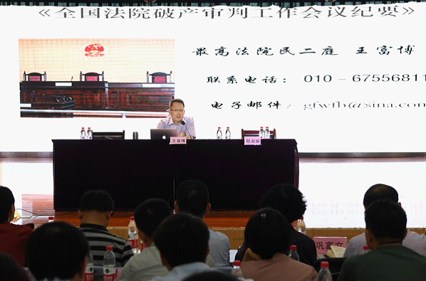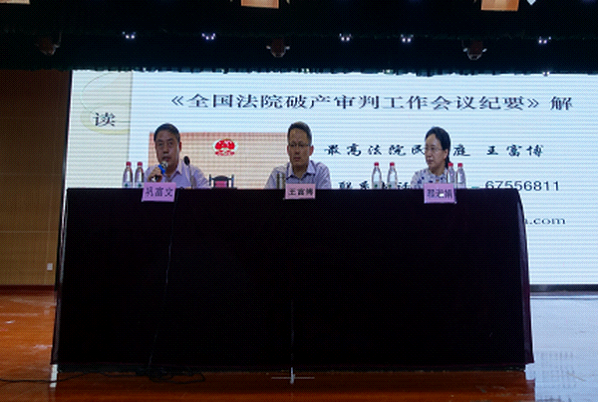 在报告会上,王富博审判长围绕《全国法院破产审判工作会议纪要》出台的背景和意义,分别就《纪要》在管理人制度、破产重整、破产清算、关联企业破产、执行转破产审查等五个方面的制度创新,进行了全面、深入的讲解。并结合《纪要》的规定对各地法院在破产审判实务中的创新做法进行了详细介绍。