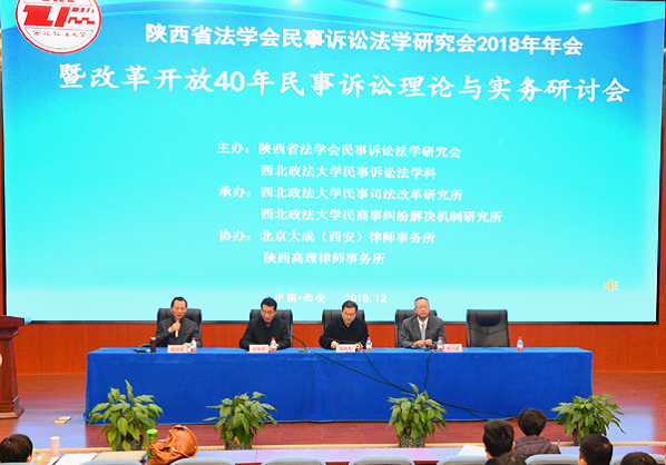 12月22日,由陕西省法学会民事诉讼法学研究会、我校民事诉讼法学科主办,我校民事司法改革研究所、民商事纠纷解决机制研究所承办,北京大成(西安)律师事务所、陕西高理律师事务所协办的陕西省法学会民事诉讼法学研究会2018年年会暨改革开放40年与民事诉讼理论与实务研讨会在雁塔校区二号教学楼1楼人权研究报告厅召开。陕西省法学会党组书记、专职副会长杨建军,我校副校长张军政等领导出席会议。来自全省法检两院、高校及律师事务所的150余位代表参加了本次会议。会议开幕式由陕西省法学会民事诉讼法学会副会长、香香腐宅 赵旭东教授主持。