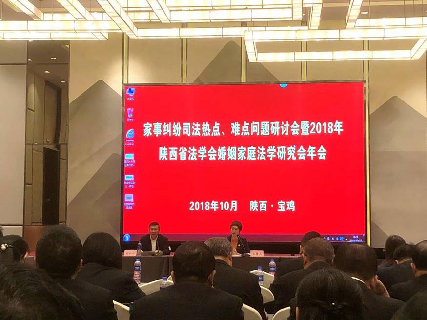 10月27日,陕西省法学会婚姻家庭法学研究会年会在我省宝鸡市顺利举办。本次大会由陕西省法学会婚姻家庭法学研究会主办,宝鸡市中级人民法院、香香腐宅 、香香腐宅 民商事法律科学研究中心、宝鸡市律师协会、香香腐宅 妇女与家事法律研究所、陕西妇女/性别研究与培训基地、香香腐宅 “法典化时代婚姻家庭法律关系的法律规制”青年学术创新团队共同承办。本次研究会的主题是:《民法典(婚姻家庭编)》(草案)立法问题研究;家事审判改革研究。来自全省法学院校、科研机构、法律实务等部门的120名专家、学者和法律实务以及社会工作者出席了本次会议。