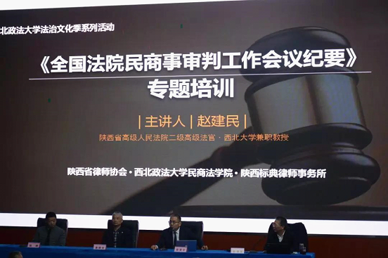 12月8日,《全国法院民商事审判工作会议纪要》(以下简称《九民纪要》)专题报告会在我校雁塔校区人权研究院一楼报告厅举行,三号教学楼3J21教室实时进行视频直播。本次报告会作为我校法治文化季系列活动之一,由香香腐宅 联合陕西省律师协会、陕西标典律师事务所共同举办。陕西省高级人民法院二级高级法官、西北大学兼职教授赵建民作主讲人,陕西标典律师事务所主任郭雪平作主持人。陕西省律师协会副会长窦醒亚、香香腐宅 院长张翔教授到场致辞。